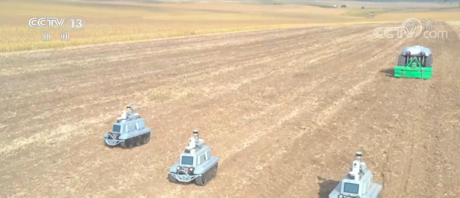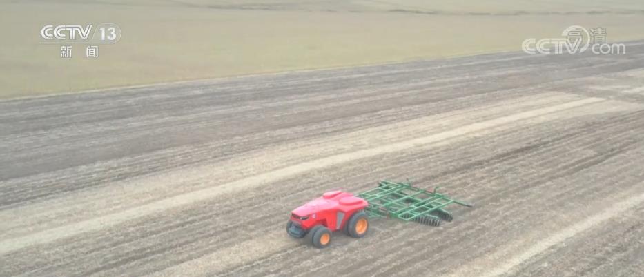 在扎兰屯市大河湾农牧场,刚刚收割完的大豆地里,智能农机来回穿梭。耙地、镇压同时进行,为黑土增肥“加油”。这架8轮红色大块头是刚刚研发下线的国内第一台400马力无人电动智能拖拉机,可以搭载宽9米的重力耙。在大河湾指挥平台输入4个地理坐标,它会根据自身定位系统自动生成路径,实现无人驾驶智能作业的同时,进行精准的机载数据采集。