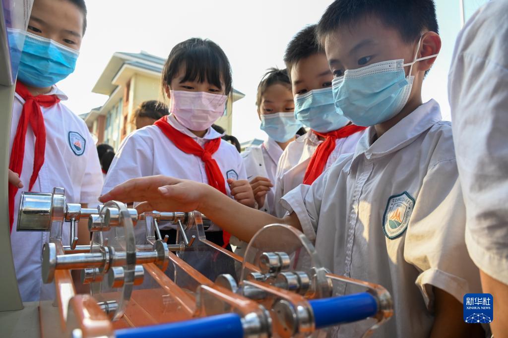 9月15日,在河南省漯河市源汇区科普日宣传活动上,学生们现场操作体验。新华社发(尤亚辉摄)