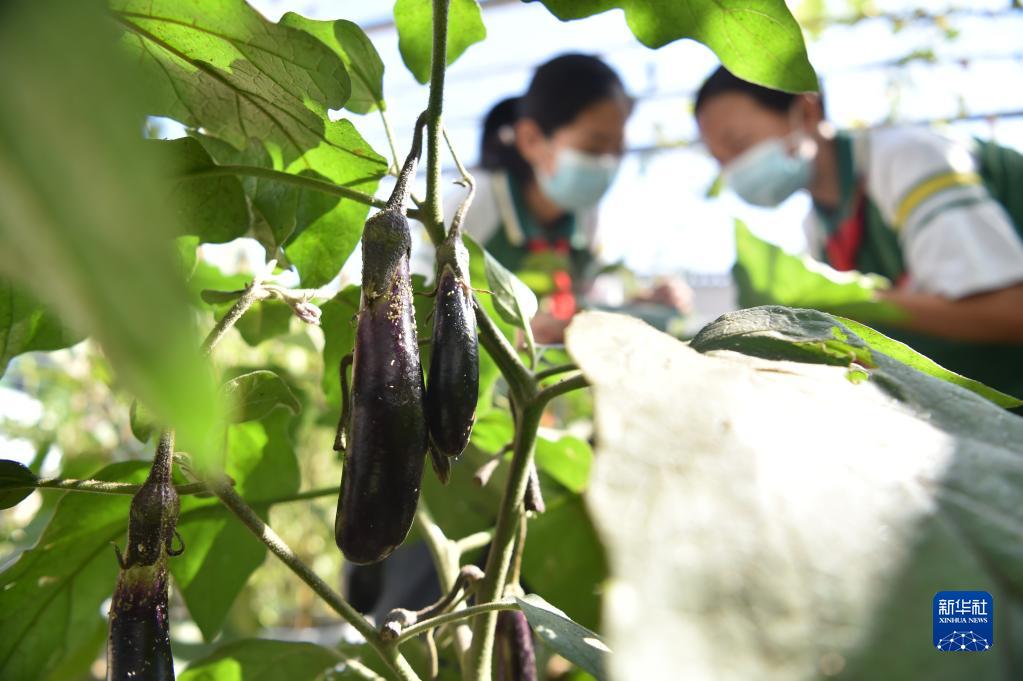 9月16日,在河北省石家庄市井陉孙庄育才学校“太空种子培育基地”,学生观察航茄生长情况。新华社发(张晓峰摄)