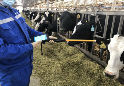 一是佩戴“电子耳标”和“智能项圈”,实时记录奶牛信息和活动状态。牧场给所有母牛配备了与物联网平台联动的“电子耳标”和“智能项圈”。“电子耳标”是奶牛的电子身份证,可自动采集数据,记录奶牛的奶量和体高体尺等信息。扫描棒通过蓝牙连接手机后,饲养员手持扫描棒识别电子耳标,手机端可显示牛只相关信息。“智能项圈”可实时记录奶牛的活动状态,全天候监测奶牛的呼吸频率、活动量、躺卧以及反刍,进而判断奶牛健康状况,若牛只出现健康异常,系统将发出预警并上报手机端,提醒工作人员立即现场查看,做到早发现早治疗。