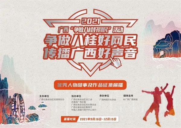争做八桂好网民,传播时代正能量。近日,2021广西“争做八桂好网民”活动优秀人物故事及作品上线展播,主要展出人物故事、诗歌作品、绘画作品三个方面的内容,传播在互联网时代用网护网守初心、踔厉奋发干事业的向上向善的奋斗精神,以及用作品记录美好生活、颂扬时代壮举、传承民族特色的文艺创作氛围。