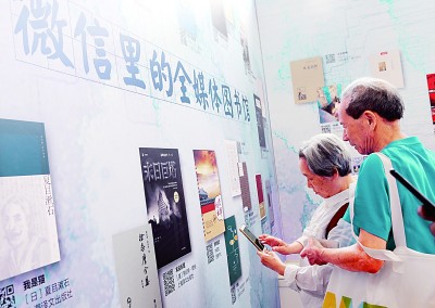 读者通过手机扫码体验全媒体图书馆。新华社发
