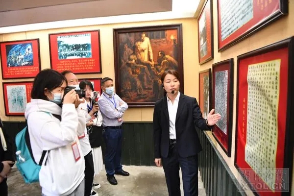 采访团来到岳北农工会旧址采访学习毛泽东湖南农民运动考察之路发生的故事。