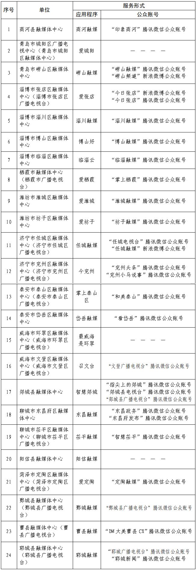近日,山东省互联网信息办公室许可24家县级融媒体中心互联网新闻信息服务资质,共计53个服务形式,其中应用程序24个、公众账号29个。其中获得许可的17家市辖区融媒体中心,是省内首批获得互联网新闻信息服务许可资质的市辖区融媒体中心,标志着山东市辖区融媒体中心规范化运营迈出重要一步。截至目前,全省共许可84家县级融媒体中心互联网新闻信息服务资质,共计238个服务形式。