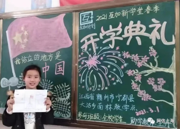 开学典礼上,由团市委合作交流部指导,沪江网“互加计划”联合各地教育部门共同发起的“纪念建党100周年系列网络课程”正式发布,该课程也成为2021年上海市“争做中国好网民 上海网民在行动”的系列主题活动,揭开了2021年组织全国青少年积极参与红色教育、学习中共党史、践行优良传统的序幕。活动通过“教学做合一”,让乡村孩子们通过网络课程,讲述红色故事、了解红色历史,增强乡村孩子爱党、爱国、爱家乡的家国情怀。