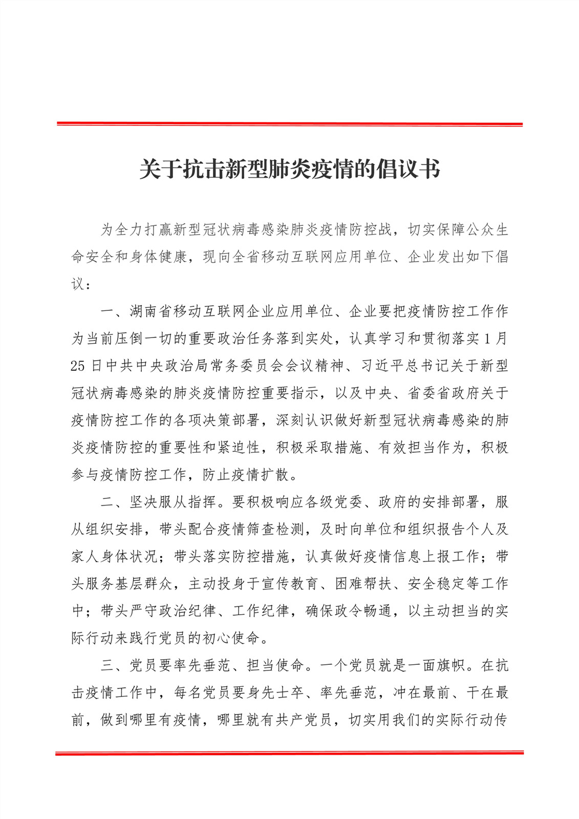 关于抗击新型肺炎疫情的倡议书(第1节)