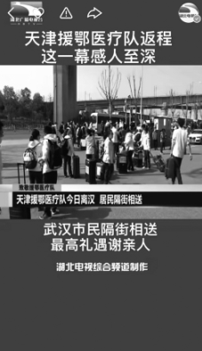 湖北广播电视台综合频道在快手平台对天津援鄂医疗队离汉进行直播。