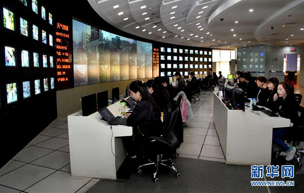 海淀区城市服务管理指挥中心指挥大厅。新华社发任超 摄